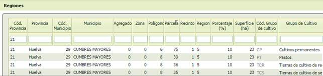 - [Cód. Grupo de Cultivo] Código del grupo de cultivo del recinto.