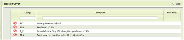 Catálogo auxiliar de consulta que recoge los tipos de olivar: