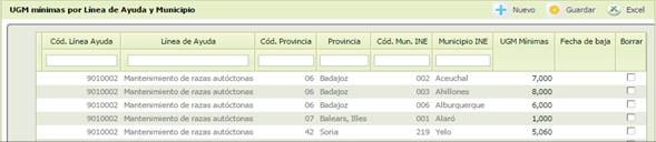 UGM mínimas por Línea de Ayuda y Municipio