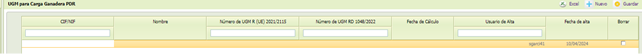 La pantalla tiene la misma funcionalidad comentada en el catálogo análogoUGM Ayudas directas para Carga Ganadera.